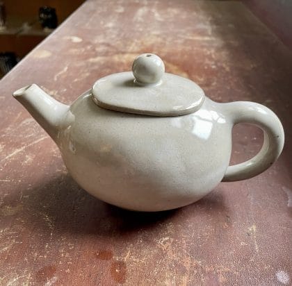 Who am I that I could make a pot? Or am I just playing?…God allows me to play, and I make these pots. Oftentimes, I find His laughter accompanying my efforts, laughing with me at the fun and beauty of touching clay. Aren’t we still being molded by the One who made the stars, sand, and sea? As we gain in years, we think about putting away small things, toys, things of fancy, but as I aged, God gave me a larger sandbox to play in. God’s Name in Hebrew means “breathing in and out.” As I see the wheel turning and the pot gathering up in my hands, it exhales as I bring it in and inhales as I bring it out…And aren’t we back at the beginning where God breathed life into man? And some of us lucky ones get to play in the clay as we breathe in and out.