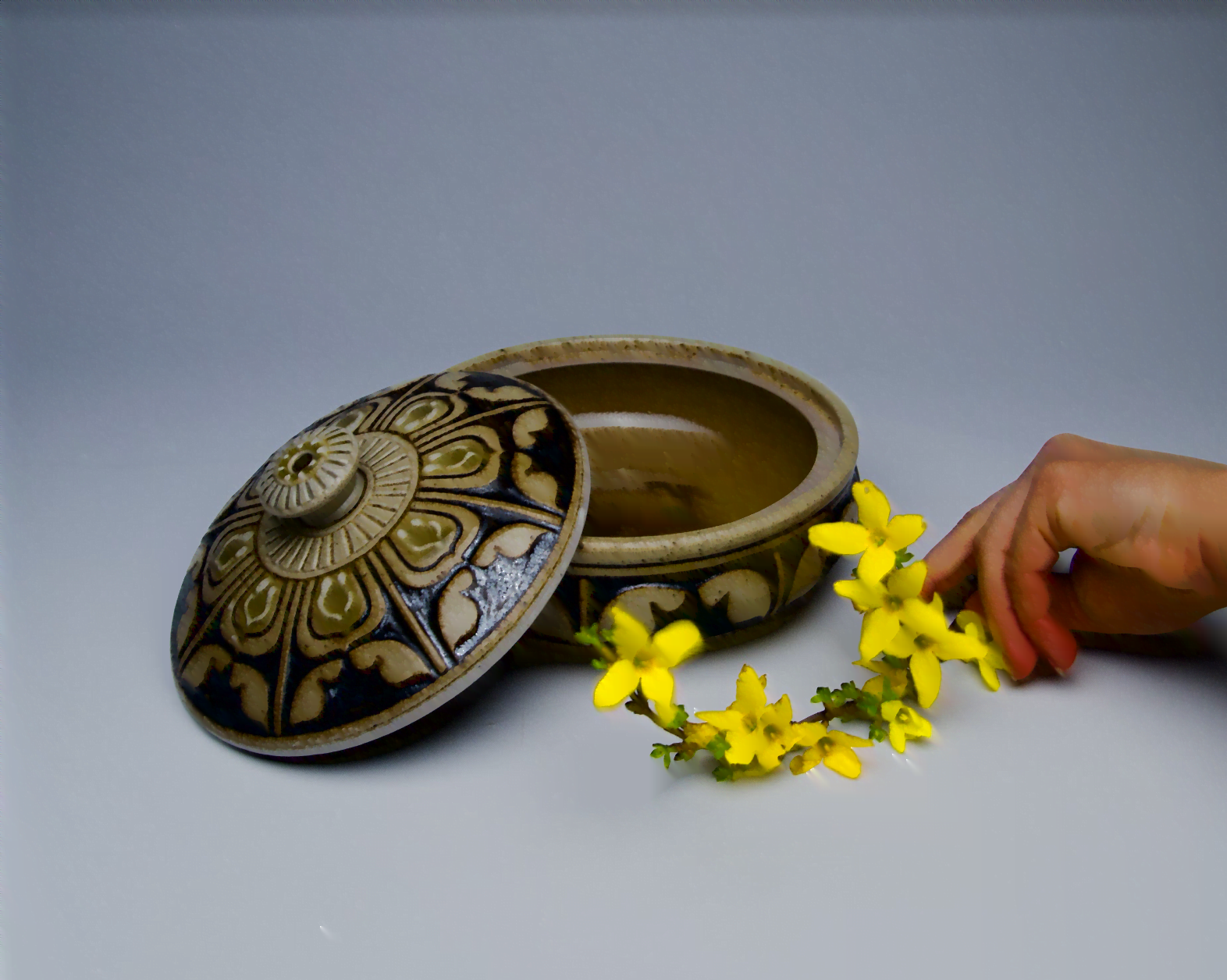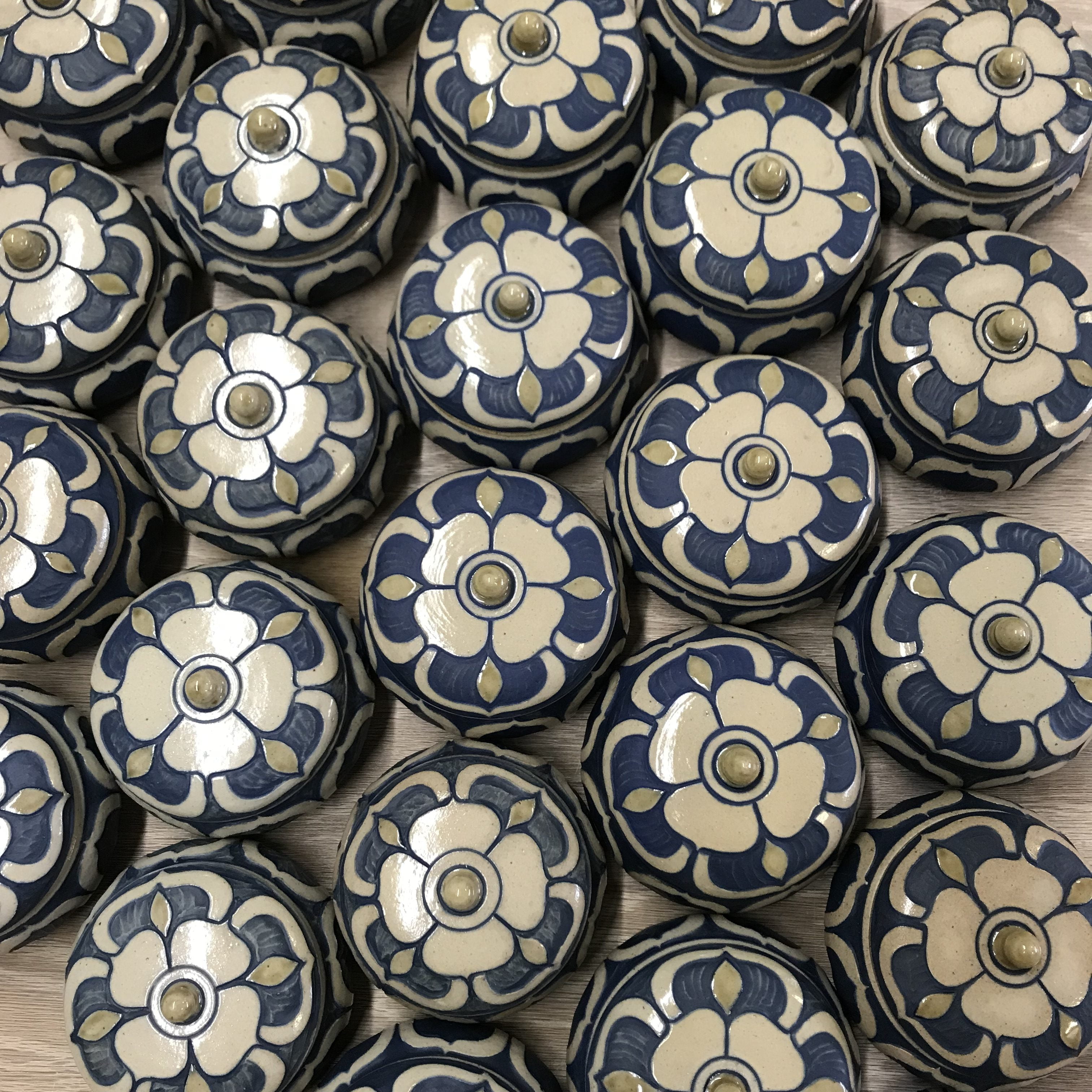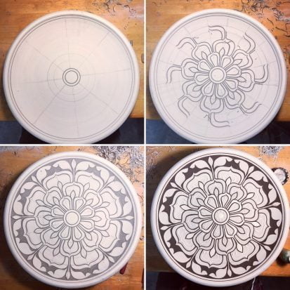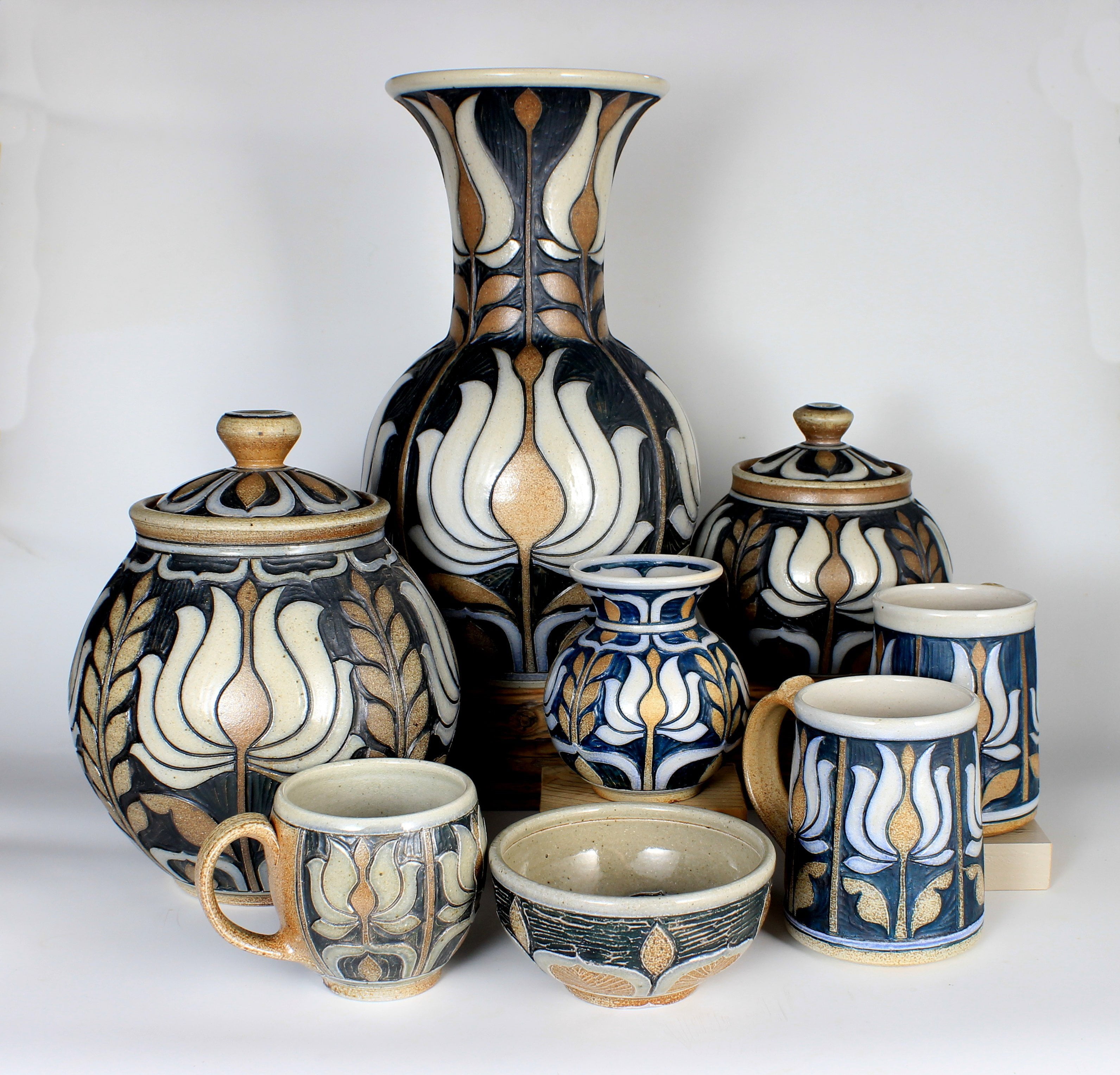 Kate Waltman began assisting an en plein air painter as an elementary school student, developing her love for the natural world and studying plant life. She began working in a production pottery studio as a teenager. Kate went on to earn a BFA in Art and Design from Alfred University and opened her studio in Seagrove, North Carolina in 2010. Kate’s pots are made with local materials, boldly carved with organic patterns inspired by Art Deco design, and fired in a large wood-burning kiln. Kate shows her pots, lectures, and teaches throughout the USA.