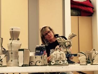 Suze has taught at numerous art centers and universities including Haystack Mountain School of Crafts, Penland School of Crafts, Arrowmont School of Arts and Crafts, Anderson Ranch Art Center, Nova Scotia School of Art and Design, Metchosin International Summer School of the Arts, Jingdezhen Ceramic Institute, Curaumilla Art Center, and Ohio University She has been a presenter at the Utilitarian Clay Conference in Tennessee, the Alabama Clay Conference, Vermont’s North Country Studio Conference, and Fusion-Ontario Clay and Glass Association Conference in Toronto. Awards include Best of Show in the First Annual Strictly Functional Pottery National, and Emerging Artist at the 2000 National Council on Education for the Ceramic Art conference.