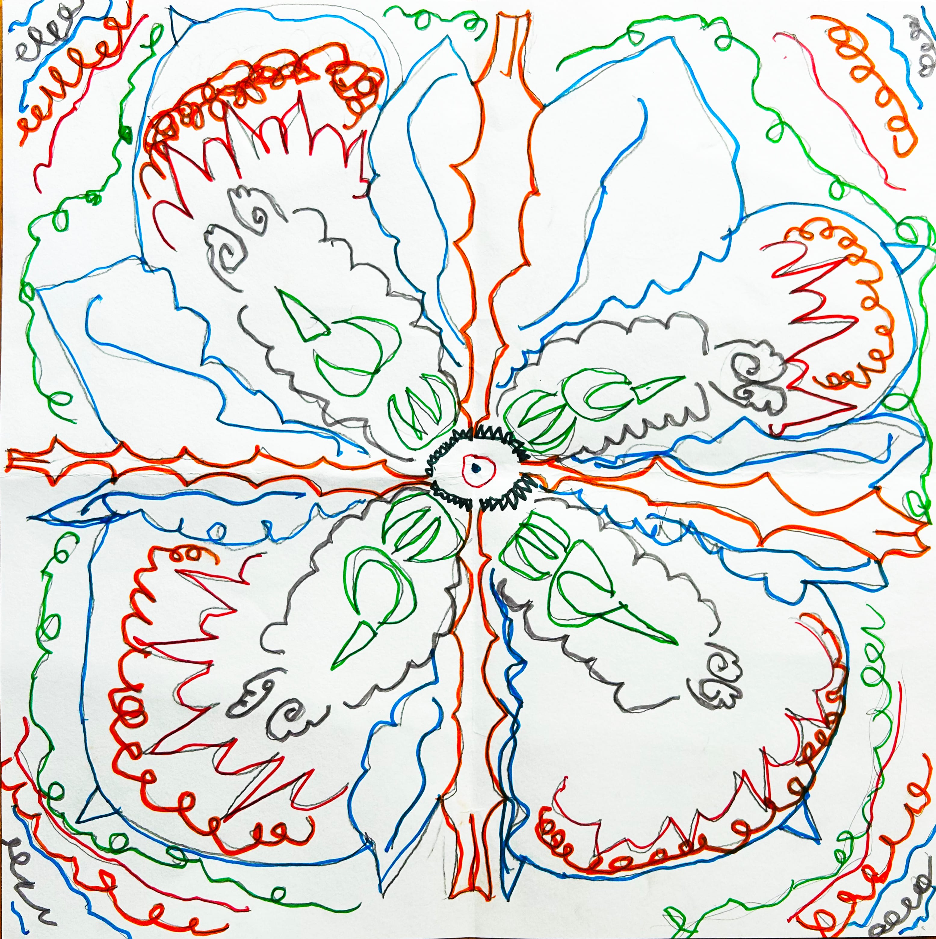 Casting about for fundraising ideas, their leader, Joe Garcia, hit upon creating a calendar and was soon connected with members of the Capitol Hill Art League (CHAL), a program of the Capitol Hill Arts Workshop (CHAW). The young artists met weekly with Rindy O’Brien, Rod Whyte and Kasse Andrews-Weller, for over three months, to explore a variety of art practices. They took a field trip to Union Station for the photography component; drew wild animals who live in DC using colored pencils and sharpie markers; experimented with iPhone or Android apps creating unique selfies, and colorful abstract art; and created composite creatures (“scranimals”) by combining an animal with either an object or another animal. They quickly generated far more work than can be included in a twelve-month calendar – and looks amazing hung in a proper gallery – completing the project just in time to open their show, as an adjunct to the Military Veterans exhibit at Hill Center, during CHAL’s Capitol Hill Art Walk.