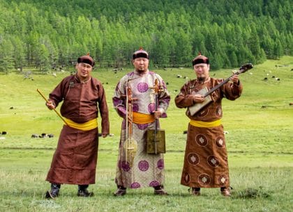 ALASH are masters of Tuvan throat singing (xöömei), a remarkable technique for singing multiple pitches at the same time. What distinguishes this trio from earlier generations of Tuvan throat singers is the subtle infusion of modern influences into their traditional music. One can find complex harmonies, western instruments, and contemporary song forms in Alash’s music, but its overall sound and spirit remain decidedly Tuvan. Trained in traditional Tuvan music since childhood, the Alash musicians studied at Kyzyl Arts College just as Tuva was beginning to open up to the West. They formed a traditional ensemble and won multiple awards for traditional throat singing in international xöömei competitions, both as an ensemble and as individuals. At the same time, they paid close attention to new trends coming out of the West. They have borrowed new ideas that mesh well with the sound and feel of traditional Tuvan music, but they have never sacrificed the integrity of their own heritage in an effort to make their music more hip. Alash first toured the U.S. under the sponsorship of the Open World Leadership program of the Library of Congress and the National Endowment for the Arts. Since then they have returned many times, to the delight of American audiences. ALASH has twice performed at Hill Center — two of the most singular, electric and enthralling concerts we’ve ever presented. This will sell out, so purchase your tickets early.