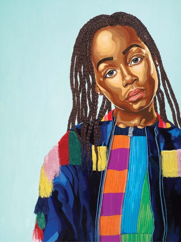 This piece features an African American girl who looks out at the viewer with innocent and curious eyes, standing on the brink of adolescence. She is on the cusp of change, questioning the world and her place in it.