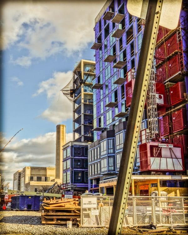 The Stacks is a large development at Buzzard Point named for the older power plant across the street. This picture was taken in 2023 when the development was under construction.
